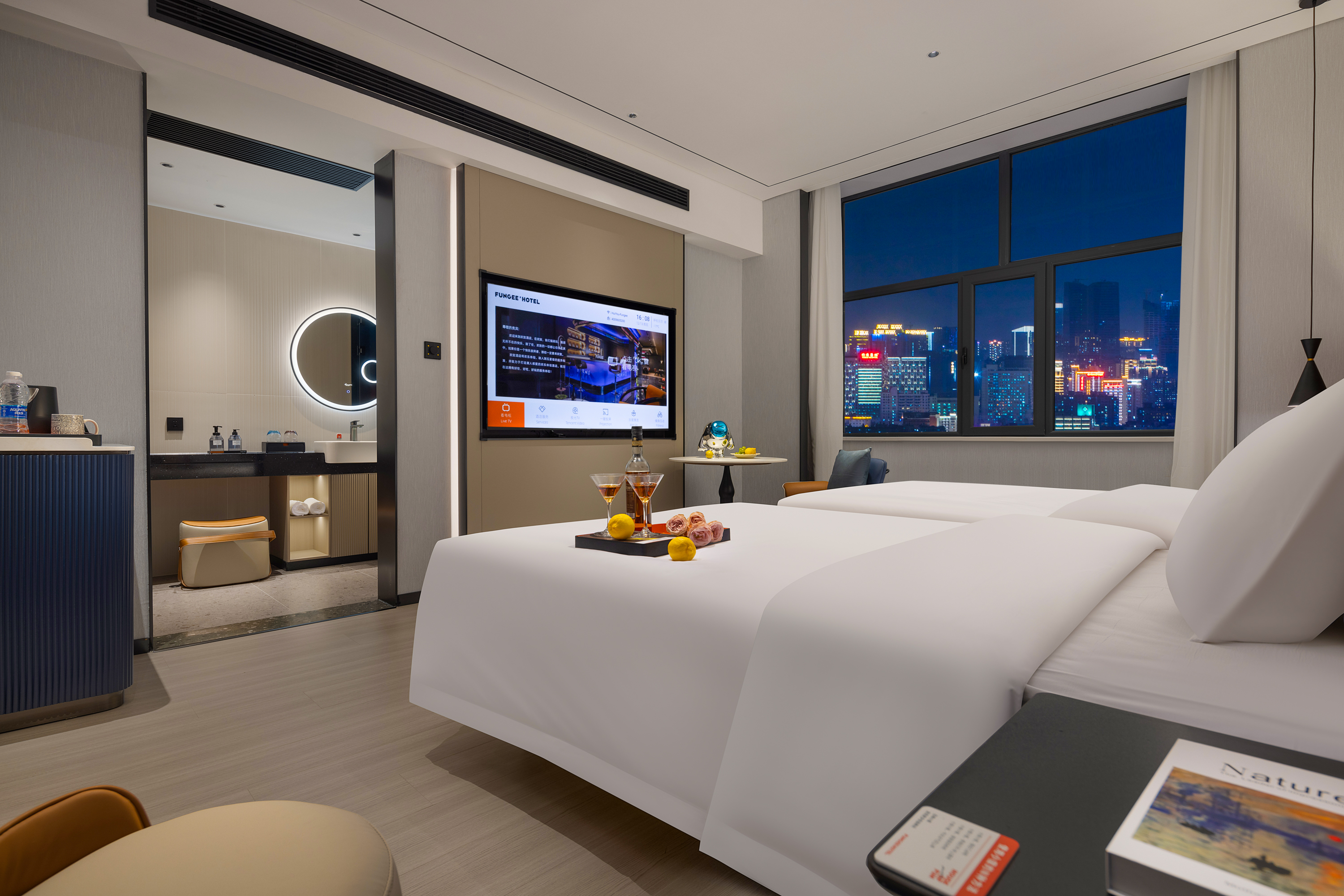 欢欣双床房【野望】丨电动窗帘+65寸电视+梦百合床垫